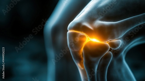 Knee joint pain highlighted. Visible skeletal structure