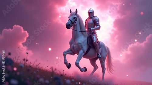 Knight Riding Horse Against Pink Sky