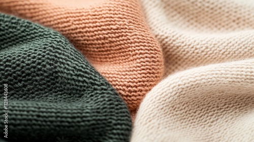 Knitted fabric swatches in assorted patterns, neatly organized to highlight their fine details, soft textures, and quality craftsmanship.