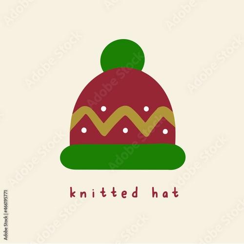 Knitted Hat Symbol. Social Media Post. Christmas Vector Illustration.