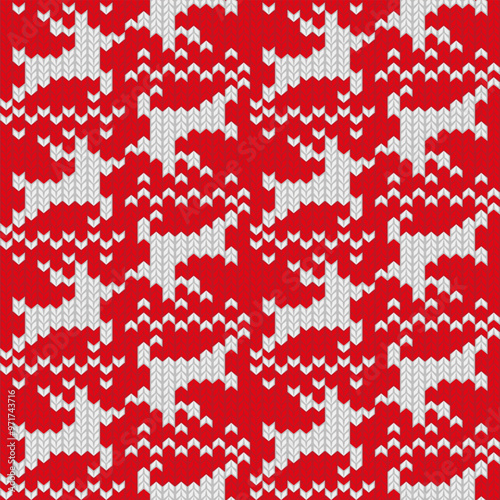 Knitted ornament Christmas ugly sweater seamless pattern design for unisex wear, printable cards, party posters, banners, sublimation. Vector illustration EPS10. Red and white colors.