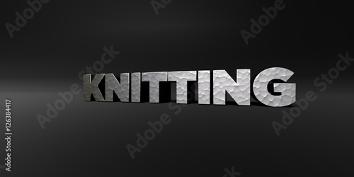 KNITTING - hammered metal finish text on black studio - 3D rendered royalty free stock photo. This image can be used for an online website banner ad or a print postcard.