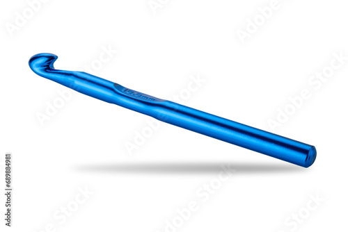 knitting weaving crochet hook 10 mm blue color isolated on white with clipping path included