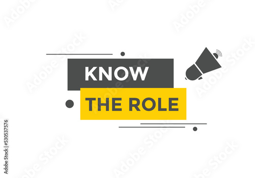 Know the role button. Know the role sign speech bubble. Web banner label template. Vector Illustration
