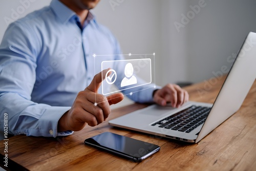 Know your customer (KYC) concept. Businessman use laptop with identity verification symbol for Increase financial security and access personal financial data. Biometrics security.