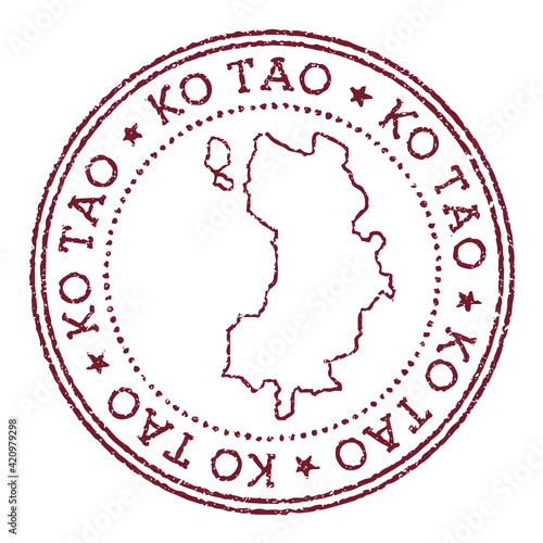 Ko Tao round rubber stamp with island map. Vintage red passport stamp with circular text and stars, vector illustration.