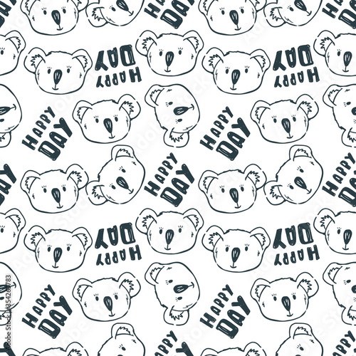 koalas faces and text happy day. Cute kids wallpaper.