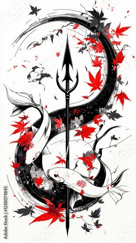 Koi Fish, Trident, and Maple Leaves A Japanese-Inspired Design