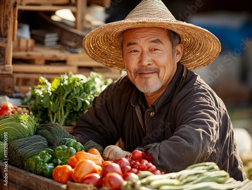 Korean Farmer at Rustic Market A Glimpse into Seasonal Farming and Fresh Produce