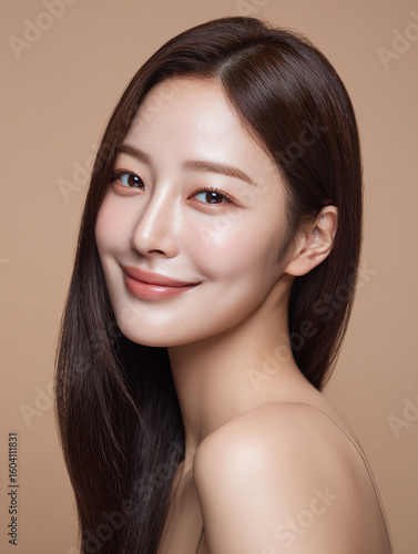 Korean K-Beauty Model with Autumn Mood Background for Skincare and Cosmetic AI Stock Image