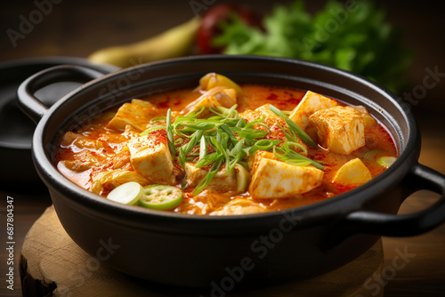 Korean kimchi stew is ready to be served. (Generative AI)