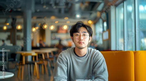 Korean office man looking at camera in his work environment