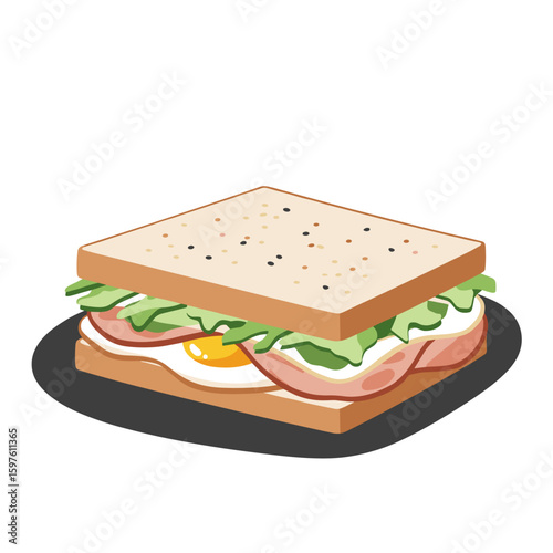 Korean-style sandwich with egg, ham, and cabbage, sleek flat vector in bold colors and minimalist geometric Korean food design