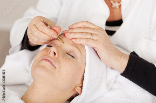 kosmetikerin zupft die augenbrauen