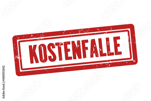 Kostenfalle (Cost trap) - A red stamp, isolated on white background.