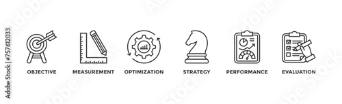 KPI banner web icon vector illustration concept for key performance indicator in the business metrics with an icon of objective, measurement, optimization, strategy, performance, and evaluation