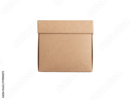Kraft carton box, cardboard package of square shape, isolated on white, transparent png
