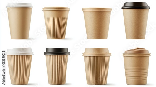 Kraft coffee cup for takeaway, paper cup, take-out coffee cup on white background. Perfect for branding and personalization. Eco-friendly and sustainable packaging solution for coffee shops