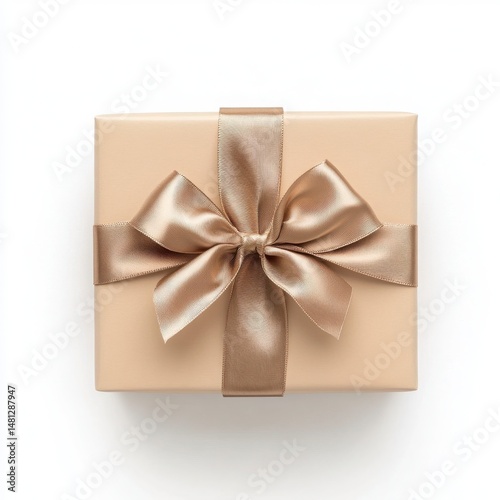 Kraft Gift Box With Gold Ribbon Bow On White Background