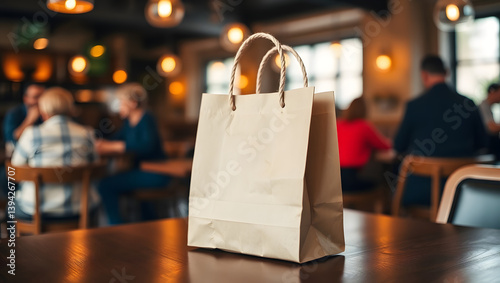 Kraft Paper Shopping Bag on Restaurant Table Takeout Food Packaging