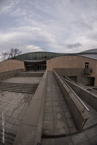 Krakow Poland November 2017 a Group of visitors walks around the museum 2