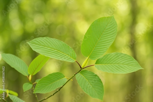 Kratom foliage hanging from branches with a soft-focused backdrop