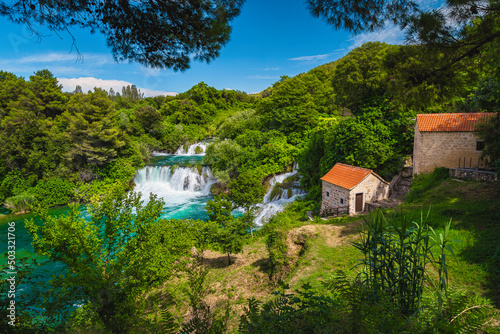 Krka National Park with waterfalls in the forest, Dalmatia, Croatia