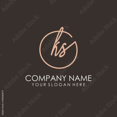 KS initials signature logo. Handwritten vector logo template connected to a circle. Hand drawn Calligraphy lettering Vector illustration.