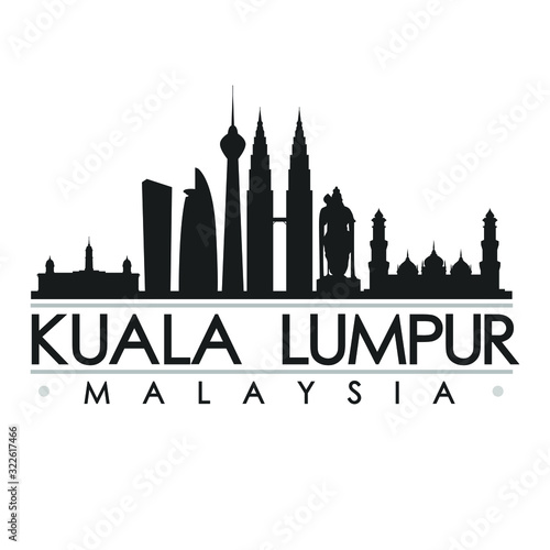 Kuala Lumpur Malaysia Silhouette. Skyline Stamp Vector City Design Landmark.