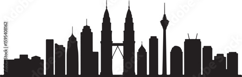 Kuala Lumpur skyline silhouette vector black and white city landmark