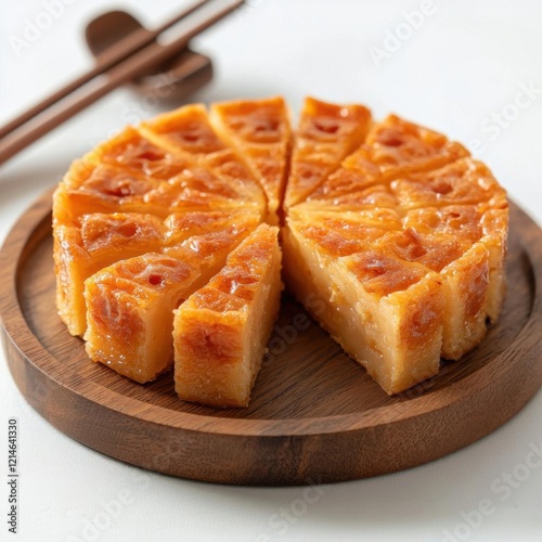 Kue Keranjang on Wooden Plate with Chopsticks 3D Render