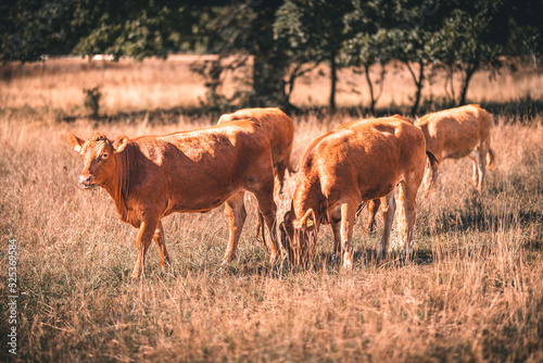 Kuh / Limousin-Rind auf sommerliche trockener Weide in einer Herde