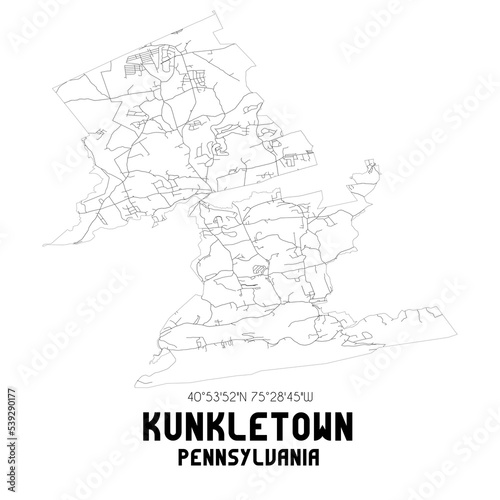 Kunkletown Pennsylvania. US street map with black and white lines.