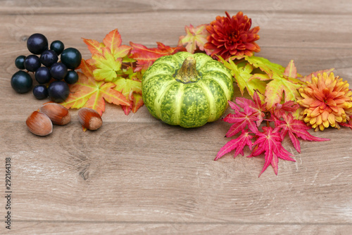 Kürbis mit Herbstlaub