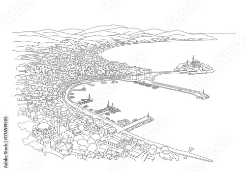 Kusadasi (Kuşadası) in Aydın Province one line drawing