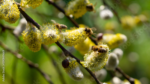 Kwiaty wierzby zdjęcie makro i pszczoły