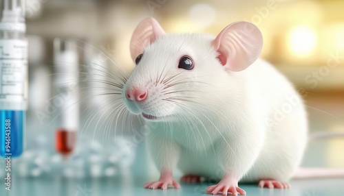 Lab rat in a controlled environment with monitoring devices, medical testing, 3D illustration