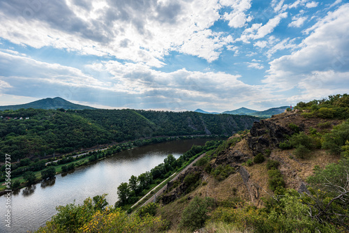 Labie river with hills of Ceske stredohori mountains above from Tri krize viewpoint in Czech republic