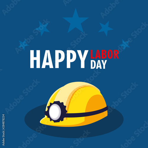 labor day card with safety helmet and stars