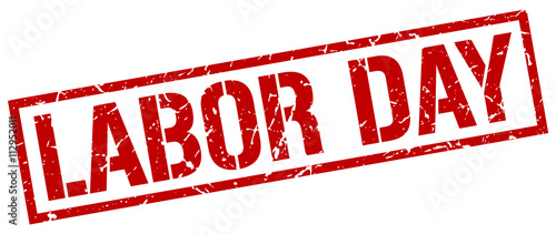 labor day red grunge square vintage rubber stamp