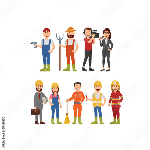 Labor Day, Set Character From Different Job, Farmer, Field Worker, Architect. Flat Vector Illustration