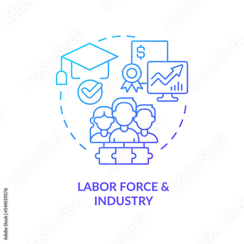 Labor force and industry blue gradient concept icon. Company staff. Industry specific education abstract idea thin line illustration. Isolated outline drawing. Myriad Pro-Bold font used