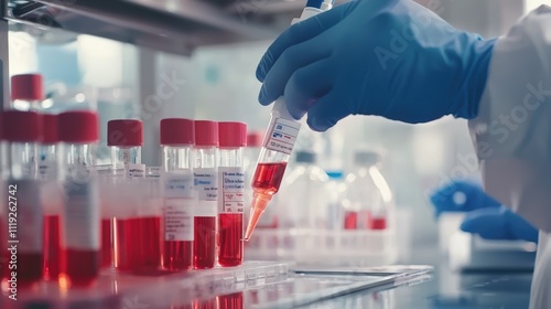 Laboratory Hand with Pipette Conducting Experiment with Red Liquid
