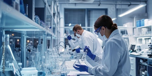 laboratory settings with scientists conducting drug research