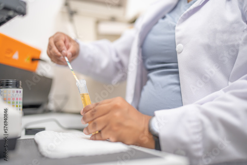 Laboratory technician observing the results of a biochemical test on a biological sample.