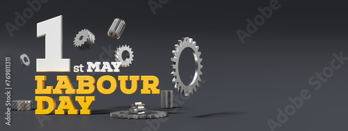 Labour day background design with metal gears isolated on dark background. 1st May Labour day background. 3D illustration