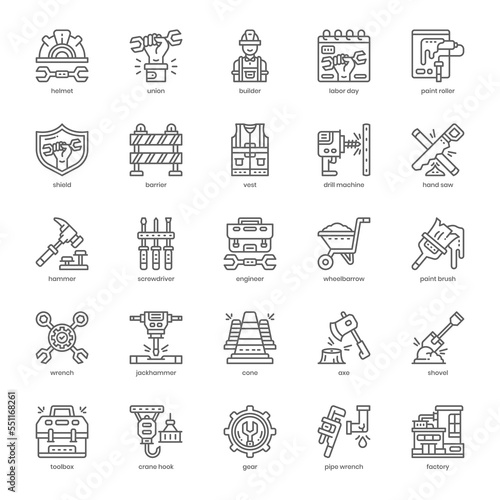 Labour Day icon pack for your website design, logo, app, and user interface. Labour Day icon outline design. Vector graphics illustration and editable stroke.