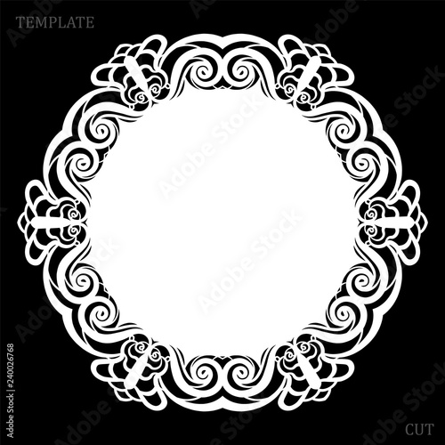 Lace round paper doily, lacy snowflake, greeting element, laser cut template, doily to decorate the cake, vector illustrations.