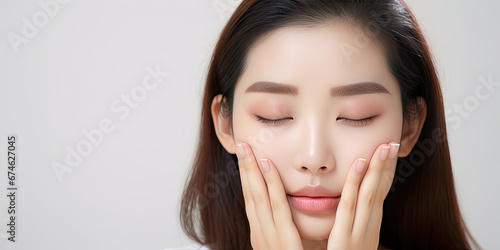 Lack of sleep problem, Worried Asian young woman with dark circles under her eyes