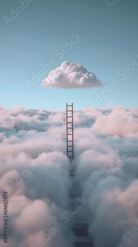 Ladder leading to a single cloud in the sky, surreal dreamlike concept